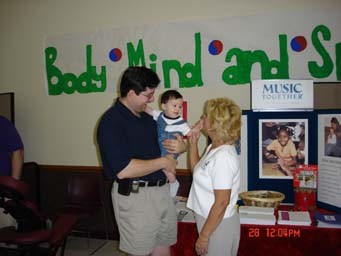 Miss Margaret talks to a family about Music Together in the Poconos.